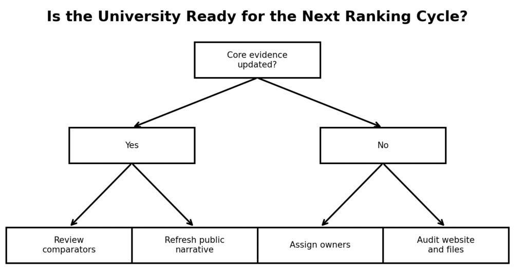 A ranking result arrives. The certificate is shared. A post goes live. Colleagues congratulate one another. Then what? This is the moment when many institutions lose momentum. They celebrate the outcome or worry about the position, but they do not convert the result into a disciplined improvement cycle. That is a missed opportunity. A ranking becomes truly useful only when it leads to structured follow-up.
