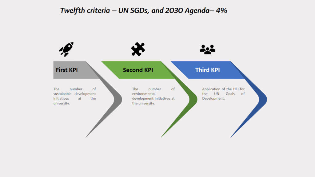 Twelfth criteria – UN SDGs, and 2030 Agenda– 4%: