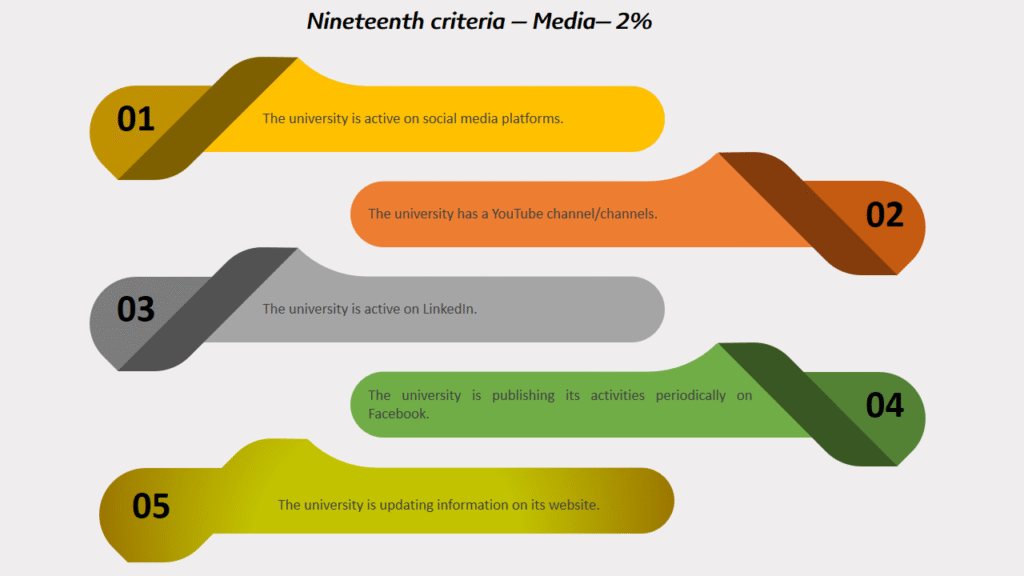 Nineteenth criteria – Media– 2%: