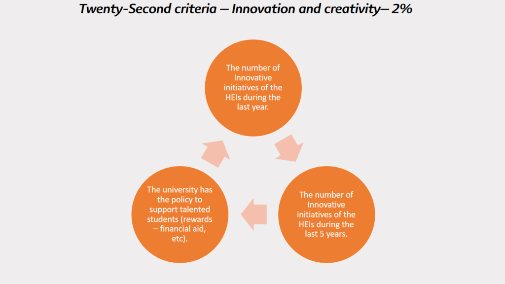 Twenty-Second criteria – Innovation and creativity– 2%