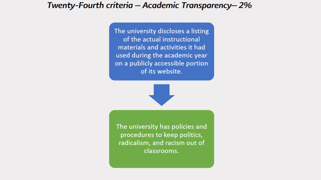 Twenty-Fourth criteria – Academic Transparency– 2%