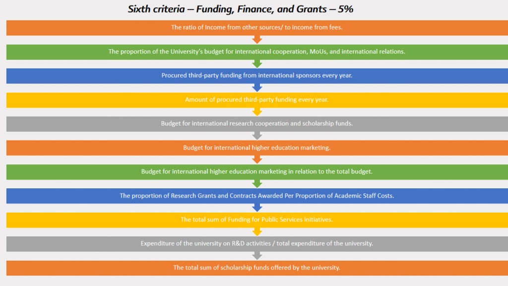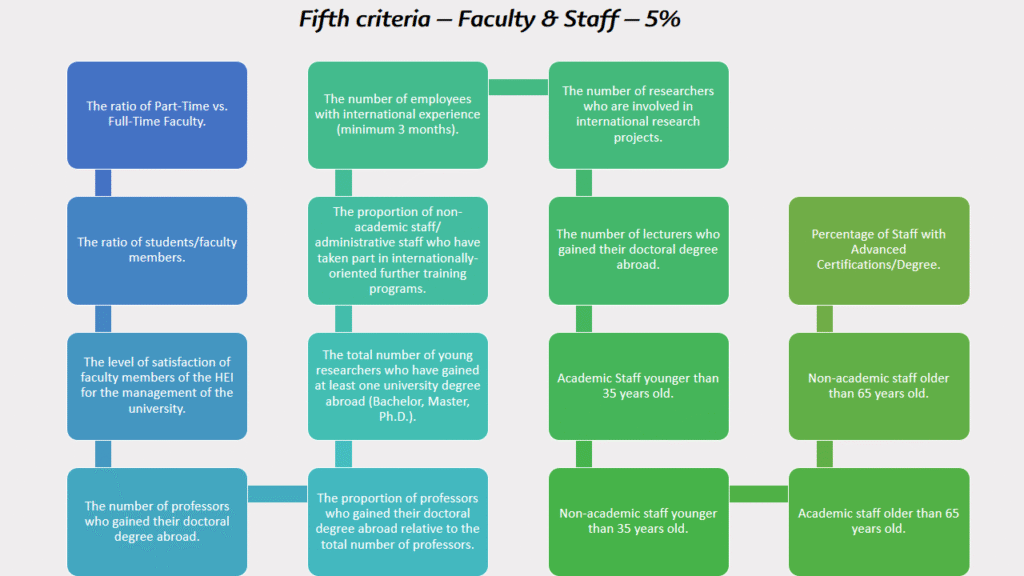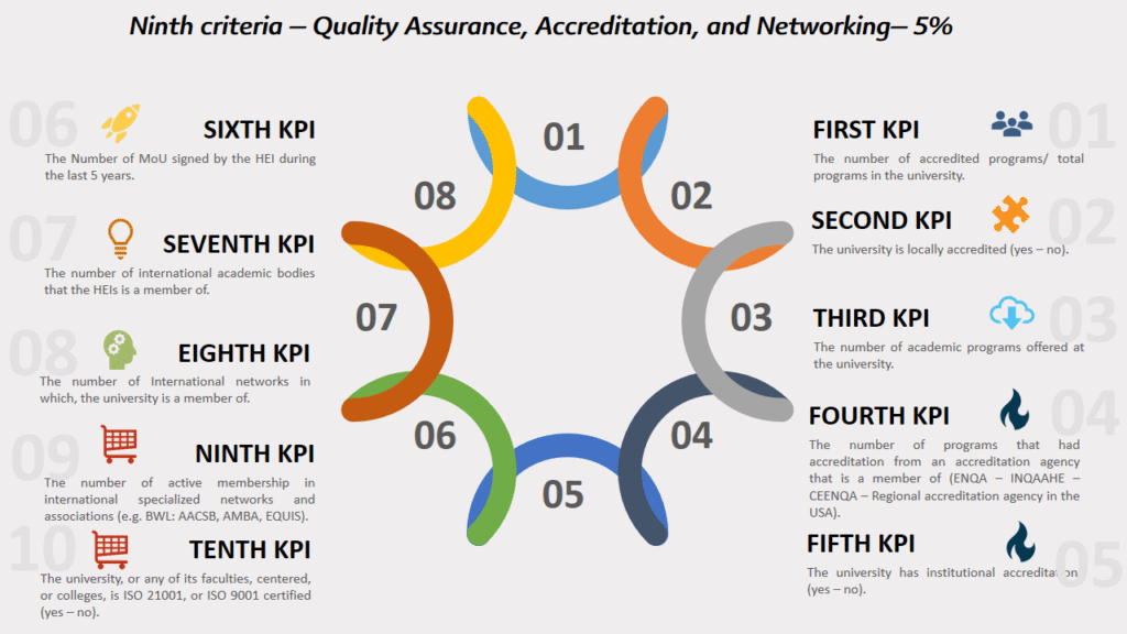 Ninth criteria – Quality Assurance, Accreditation, and Networking– 5%: