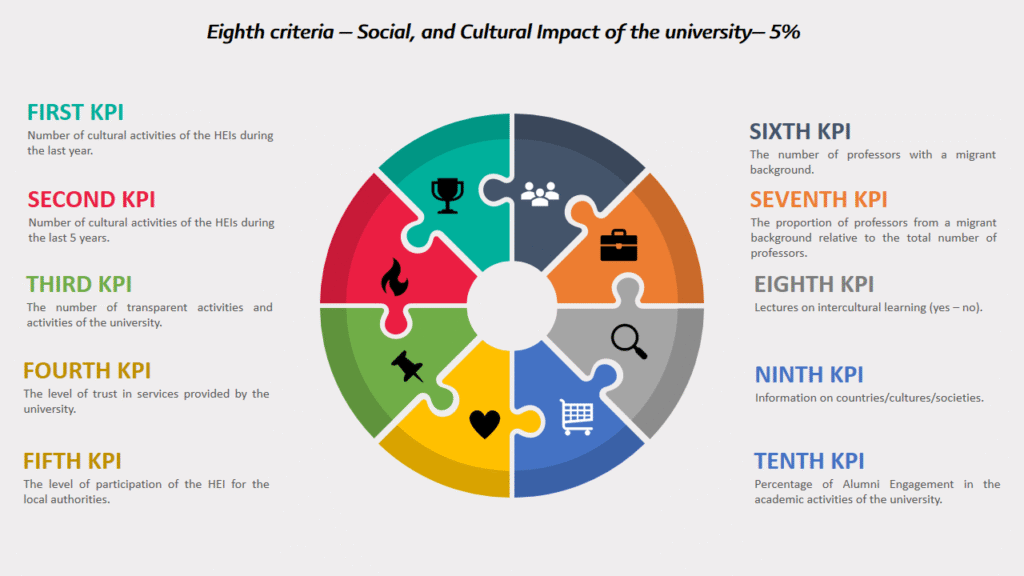 8. | Social, and Cultural Impact of the university | 5% |